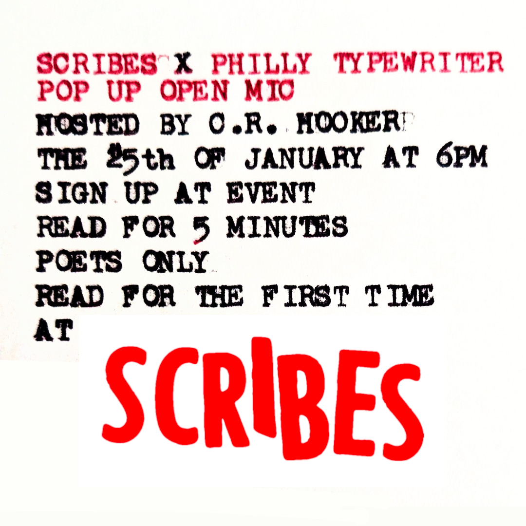 Tomorrow January 25th at 6:00pm SCRIBES is holding a pop-up open mic at Philly Typewriter in South Philadelphia at 1735 E Passyunk Ave.