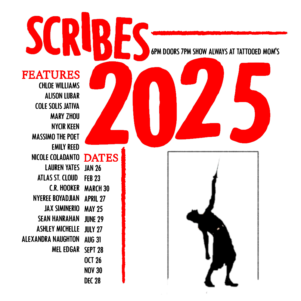 Happy New Year to the SCRIBES of Philadelphia. 2025 is a big one. We’ll see SCRIBES expand quite a bit this year, if all goes according to plan, & we have a stacked lineup of featured readers (& Super Top Secret events in the works).